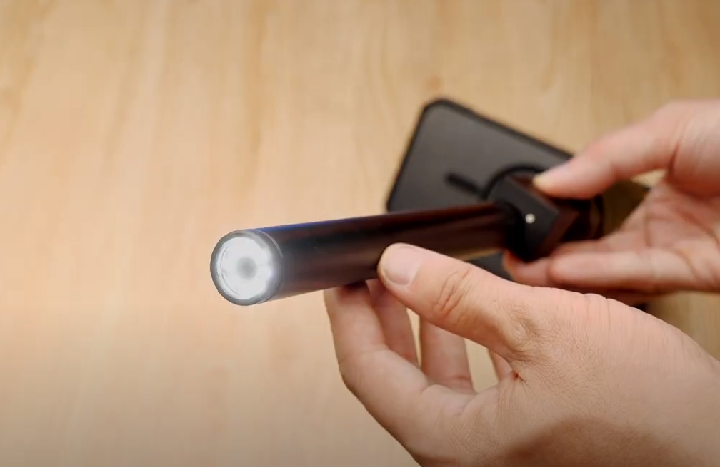 그리고 렌즈 앞부분에는 LED소자가 박혀있어서 내장배터리로 간단히 온오프가 가능하다.